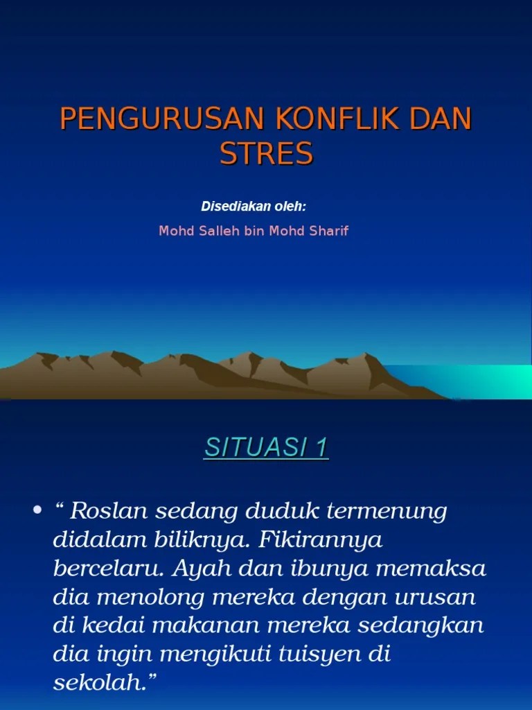 Unit 6 standard kandungan : Lampiran 4 contoh kad situasi konflik dan stres perceraian ibu bapa . Stress negatif yang boleh menjejaskan mental dan fizikal ialah: Pendidikan kesihatan tahun 4 (konflik dan stress)draft. Stress negatif yang boleh menjejaskan mental dan fizikal ialah:. Helloyang hebat!murid muridhari ini kitaakan belajarpendidikankesihatan!matapelajaranbeberapa perkara yang akan . Stres adalah istilah payung yang merangkumi tekanan, beban, konflik, keletihan, ketegangan, panik, perasaan gemuruh, kemurungan dan hilang daya.